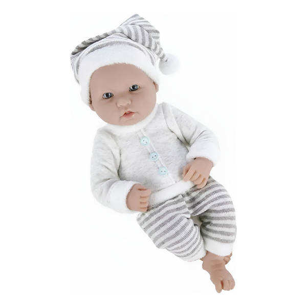 Además, este bebé viene con un conjunto de ropa igual o similar a la imagen, lo que permite a los pequeños vestirlo y cuidarlo como si fuera un bebé real. Con su tamaño de 36 cm., este bebé es lo suficientemente grande como para abrazar y lo suficientemente compacto como para llevarlo a todas partes.