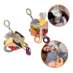 Este cubo didáctico de tela suave está lleno de texturas, sonidos y sorpresas que despiertan la curiosidad natural de los bebés: