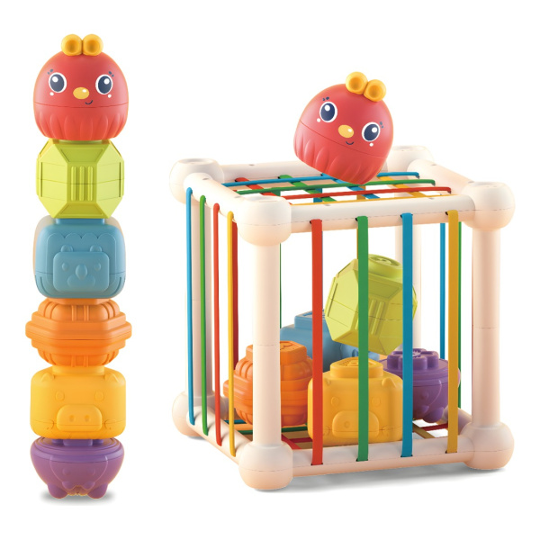 Explora el aprendizaje a través del juego auténtico con nuestro Cubo Encastrable con Elásticos. Diseñado para edades de 10 meses en adelante, este juguete clasificador de formas ofrece una experiencia de desarrollo integral para bebés y niños pequeños.
