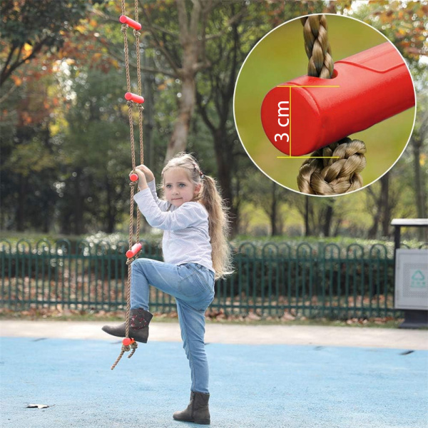 Fabricada con material PP resistente, no tóxico y ecológico, esta escalera es duradera y segura. Su capacidad de carga de 150 kg garantiza la estabilidad mientras los niños mejoran su equilibrio y habilidades de escalada. Perfecta para instalar en el patio, una fortaleza en el árbol o incluso en un gimnasio de la jungla.