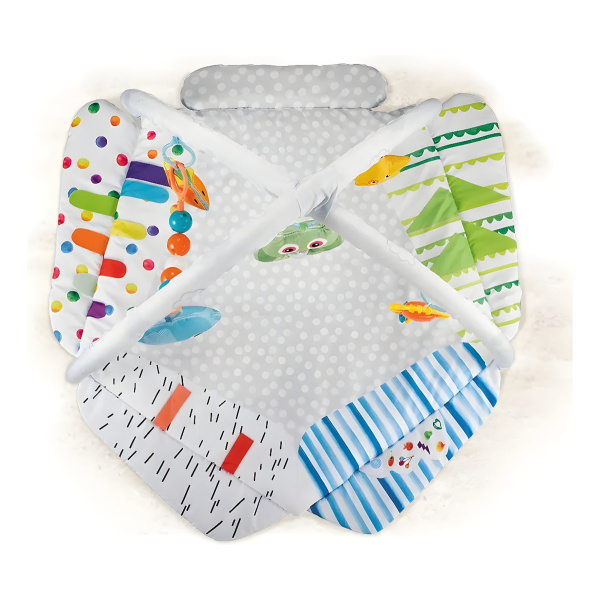 Este gimnasio de bebé ofrece una alfombra educativa que estimula la motricidad y los sentidos de tu hijo. Los elementos en su superficie y los juguetes incluidos fomentan el desarrollo físico y sensorial. Tu bebé interactuará con chirridos, sonajeros, crujidos y más, entrenando su oído y mejorando su percepción visual. Los colores brillantes y sonidos cautivadores mantienen la atención de tu bebé y lo ayudan a concentrarse en objetos específicos. Además, las texturas diversas en la alfombra enriquecen su experiencia táctil.