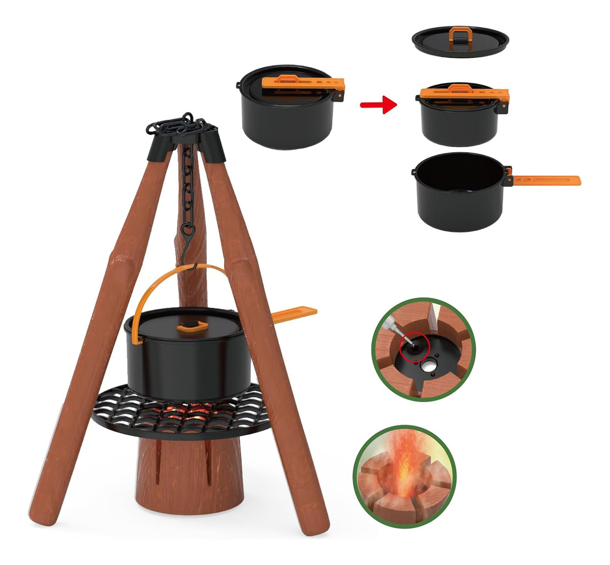 Este set no es solo un juguete, es una experiencia completa. La estufa de camping simula la cocción real con luces y rocío de agua, mientras que la linterna y los accesorios brindan todo lo necesario para una aventura al aire libre. Ya sea en el jardín, el parque o el salón de tu casa, este set de camping inspirará amor por la vida al aire libre y fomentará el desarrollo de habilidades importantes como la creatividad y la resolución de problemas.