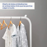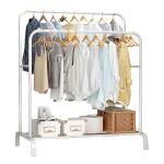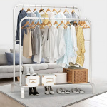 Diseñado con dos varillas para colgar, este perchero ofrece amplio espacio para tus abrigos, chaquetas y vestidos. Su estante inferior añade estabilidad, mientras te brinda espacio adicional para zapatos, botas, cestas o cualquier accesorio que desees mantener a mano.